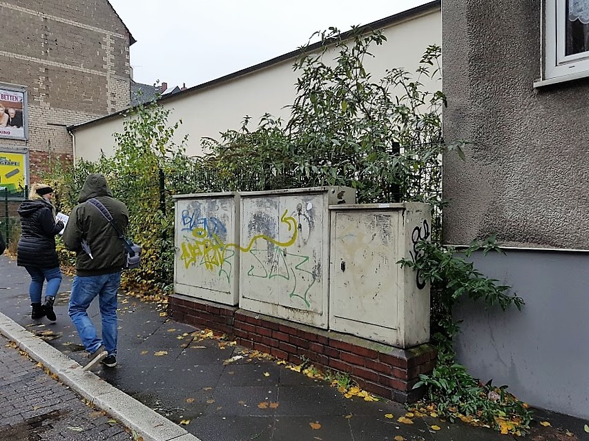 Bei Wuppertaler Regenwetter, aber mit bester Stimmung, wurde letzte Woche der erste Schritt für das Heckinghauser Street Art Projekt gemacht – die Verteilerkästen wurden ausgewählt. Die leitenden Künstler Bastian Feger und Dominik Hebestreit sowie das Quartierbüro Heckinghausen machten sich auf die Suche nach Verteilerkästen, die im Rahmen des Projektes „Street Art Heckinghausen – Ein Mehrgenerationenprojekt zur Verschönerung des Zentrums“ neu gestaltet werden sollen. Bastian Feger und Dominik Hebestreit haben bereits viele Kunstprojekte in Wuppertal durchgeführt und freuen sich, dass nun auch Farbe nach Heckinghausen kommt.