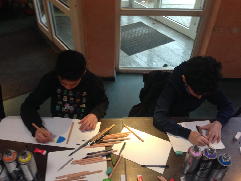 Im Rahmen des Städtebauförderprogramms Soziale Stadt wird der Spielplatz Kraut- / Werlétraße 2019 neugestaltet, im Vorfeld gab es hierzu in den Osterferien 2016 ein Beteiligungsverfahren mit Kindern. Viele tolle neue Spielgeräte werden für die kleinsten Heckinghauser*Innen aufgestellt, unter anderem eine neue Seilbahn. Auch die Wand auf dem unteren Teil des Spielplatzes soll durch den Verfügungsfonds aufgewertet werden. Am 9. und 10. Februar lud der Stadtteiltreff Heckinghausen zu einem Workshop für Kinder. Acht Jungen und Mädchen nahmen an den Workshops teil, der durch Bastian Feger geleitet wurde. Gemeinsam wurde mit den Kindern überlegt, was sie sich als Nutzer des Spielplatzes auf der Wand wünschen. Die Kinder waren sehr kreativ und entwickelten Vorgaben, die nun auf der Wand umgesetzt werden sollen.